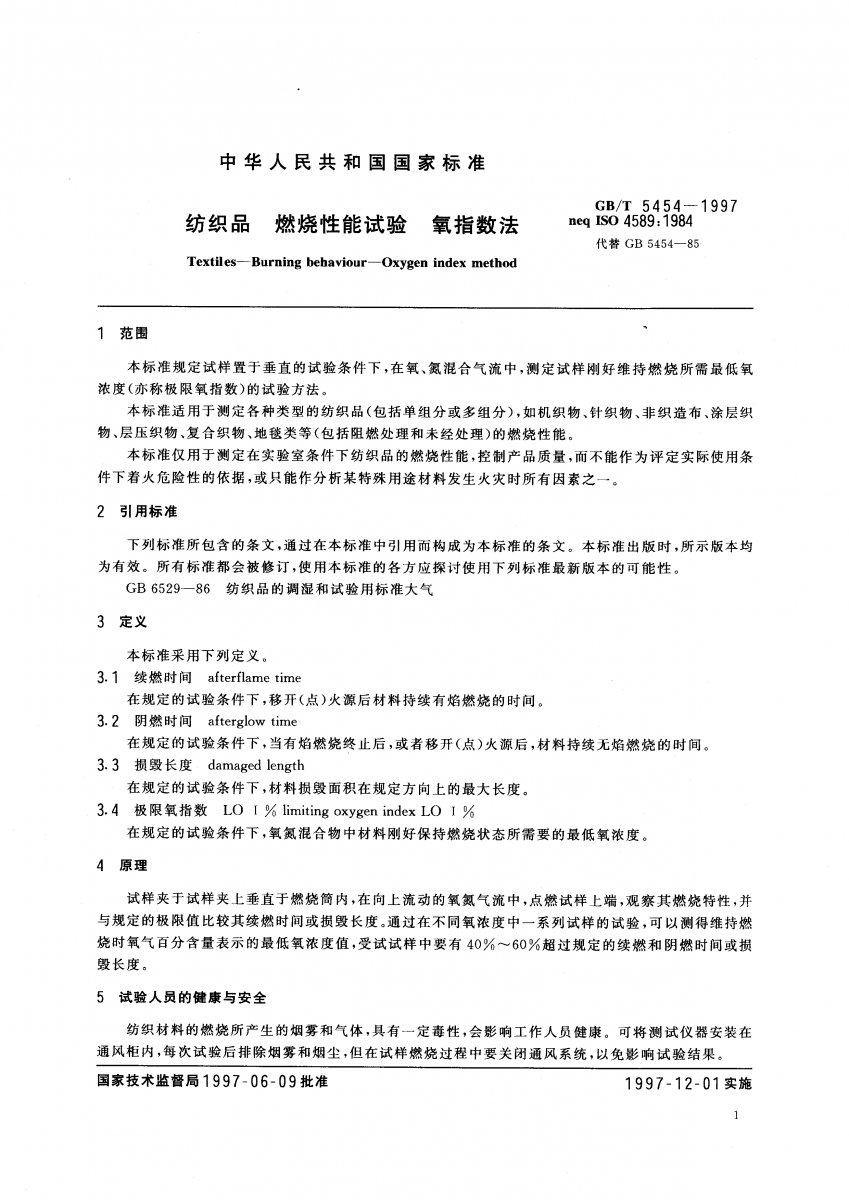 GB/T 5454-1997 紡織品 燃燒性能測(cè)試 氧指數(shù)法