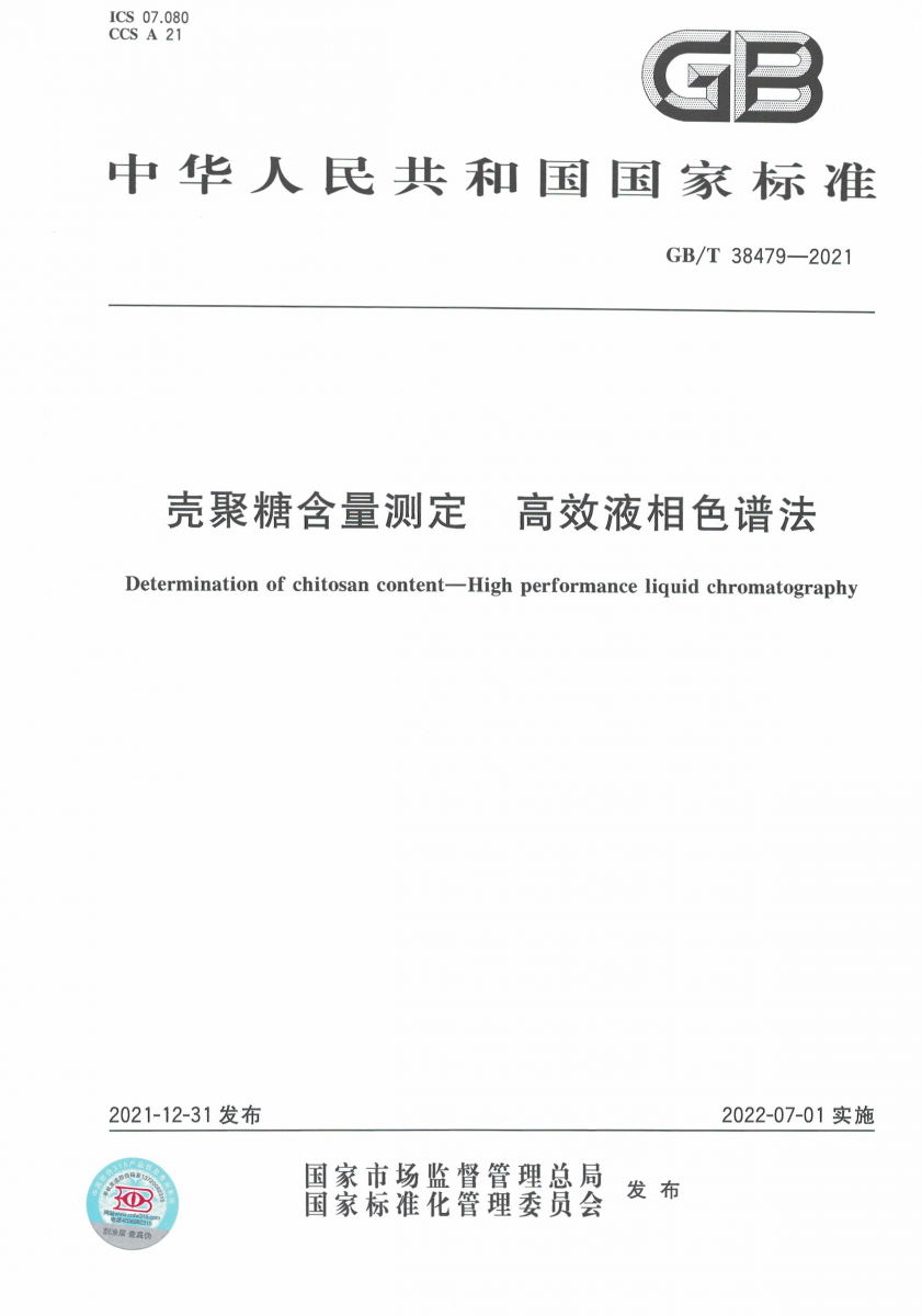 GB/T 38479-2021 殼聚糖含量測定 高效液相色譜法