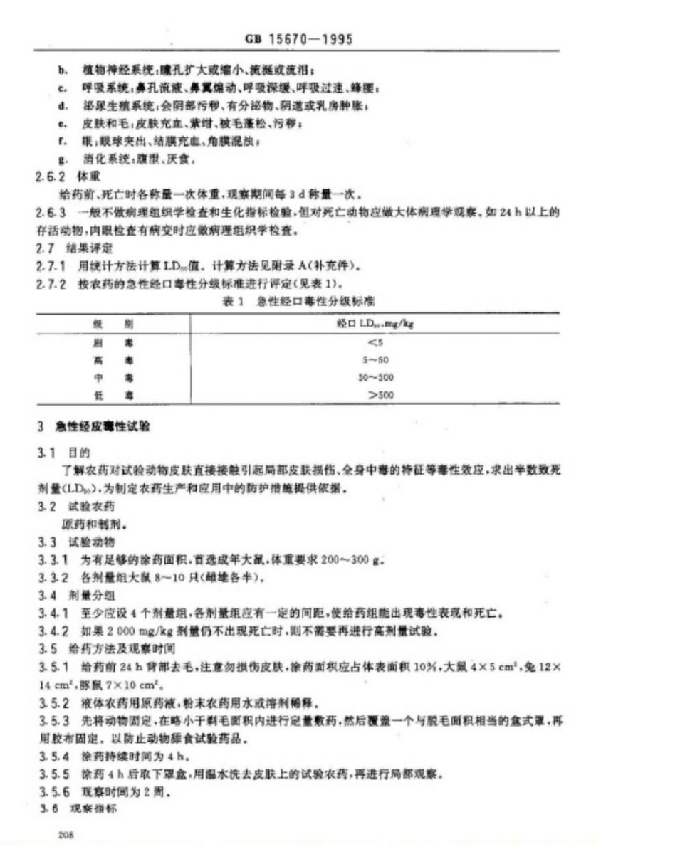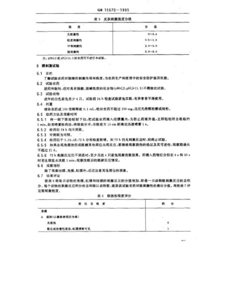 GB 15670-1995 農(nóng)藥登記毒理學試驗方法