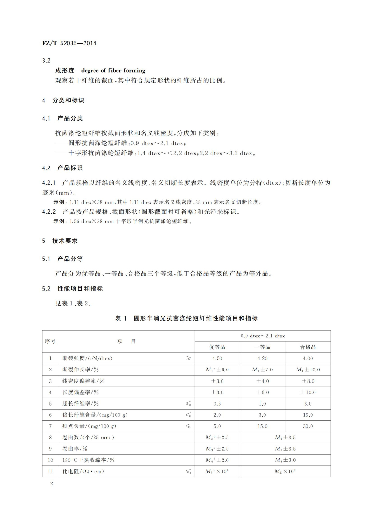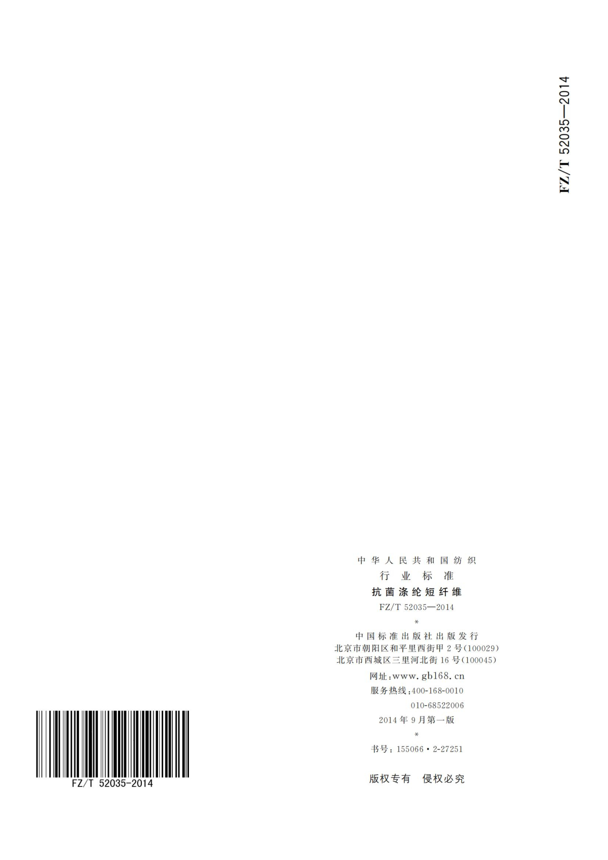 FZ/T 52035-2014 抗菌滌綸短纖維