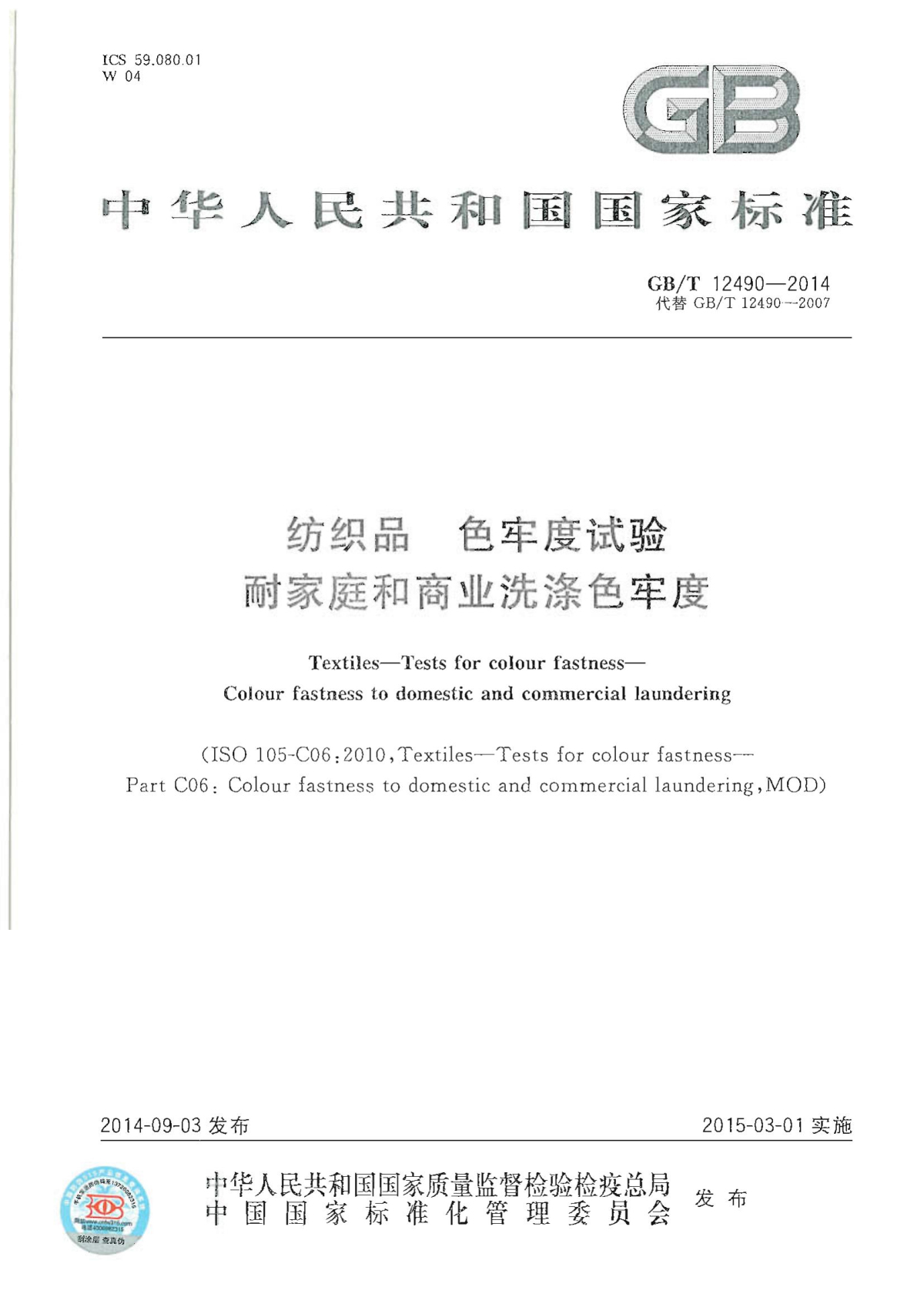 GB/T 12490-2014 紡織品 色牢度試驗(yàn) 耐家庭和商業(yè)洗滌色牢度