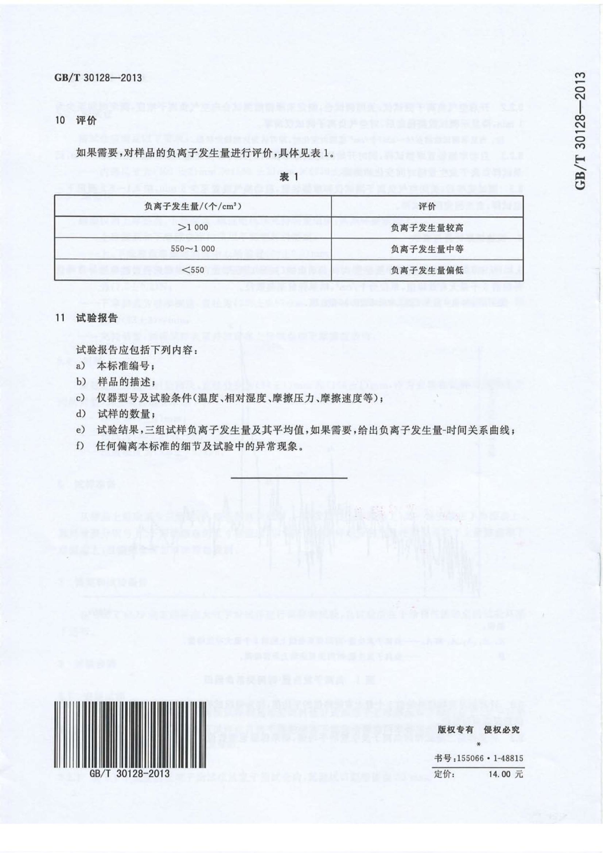 GB/T 30128-2013 紡織品 負離子發生量的檢測和評價