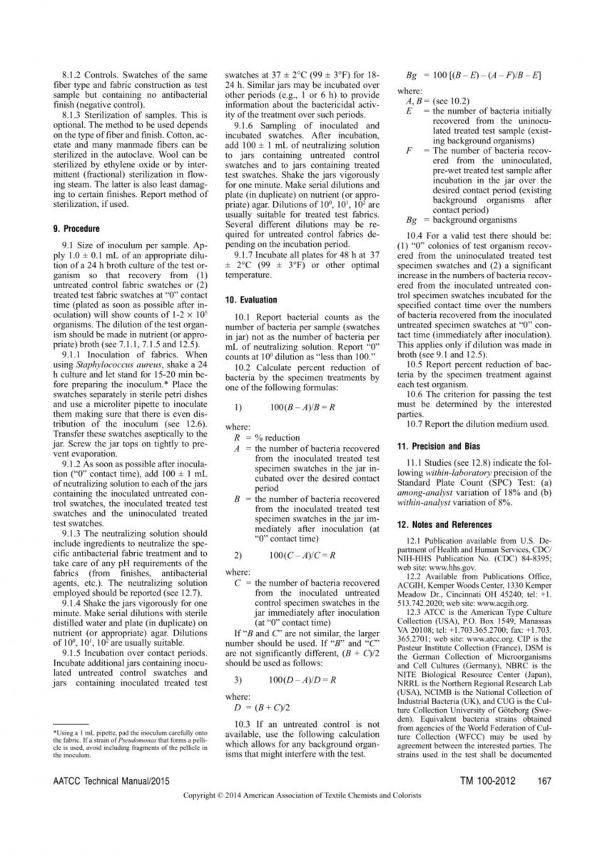 AATCC 100-2012 紡織材料的抗菌性能評價