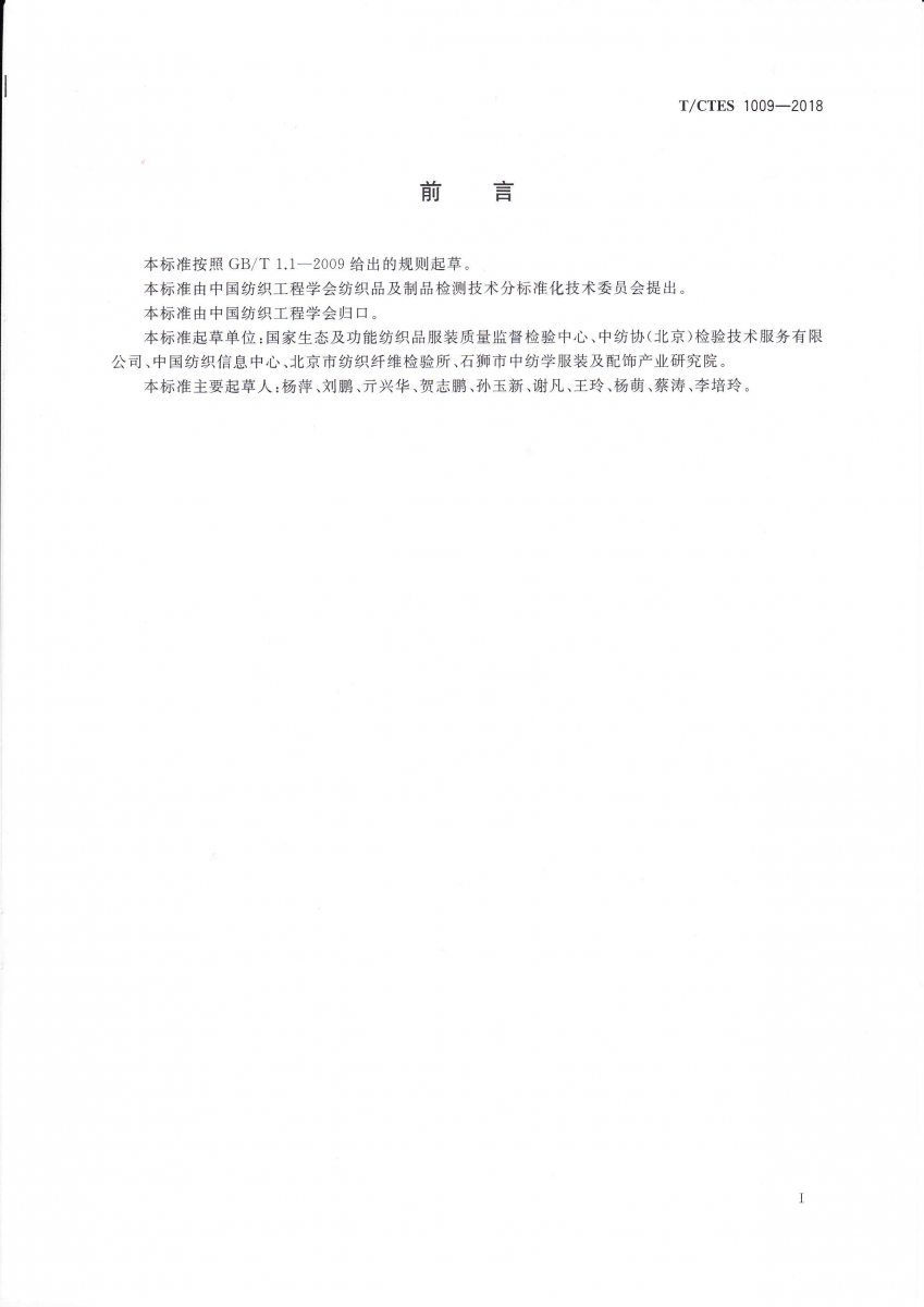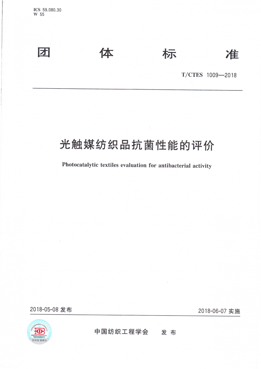T/CTES 1009-2018 光觸媒紡織品抗菌性能的評價