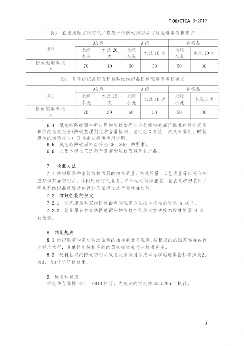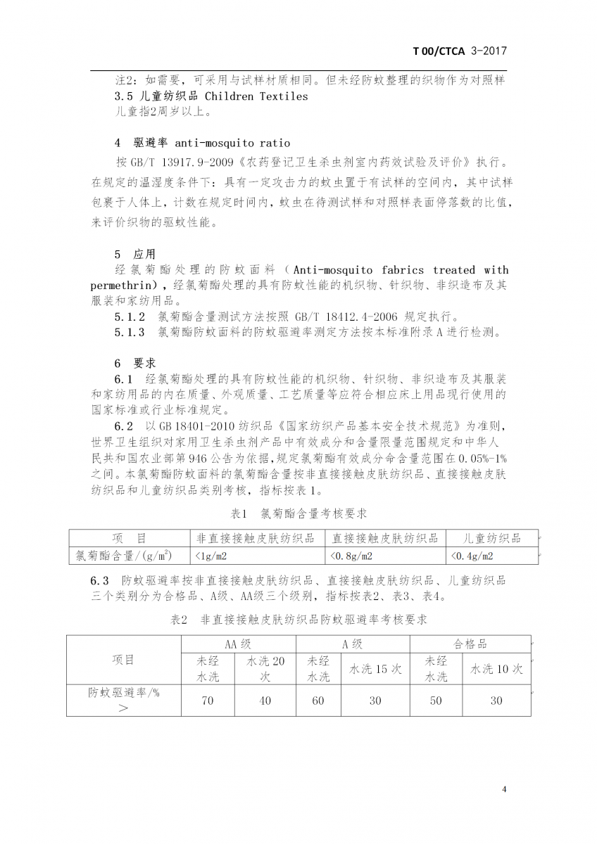 T00/CTCA3-2017 氯菊酯防蚊面料