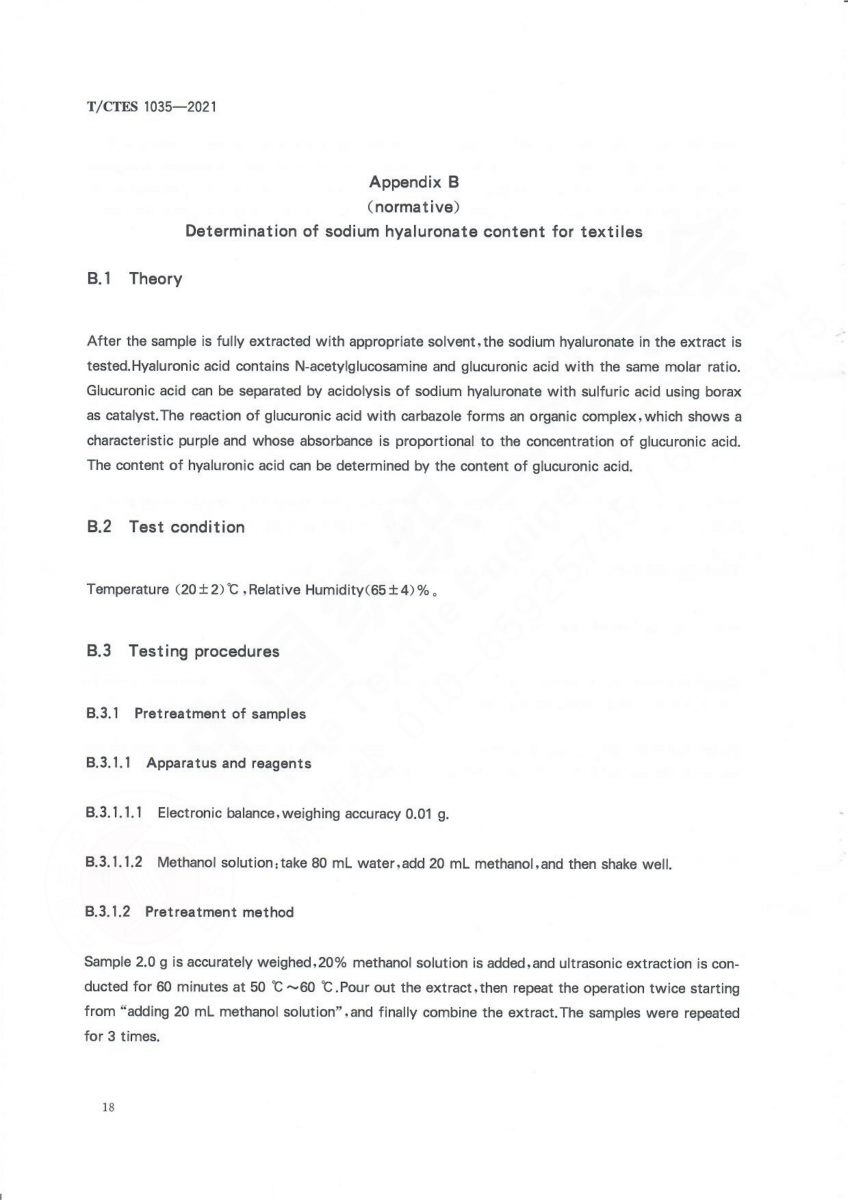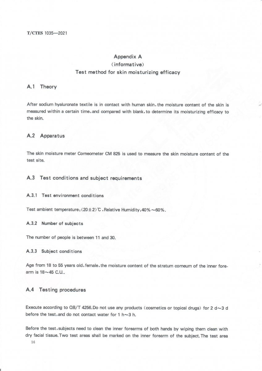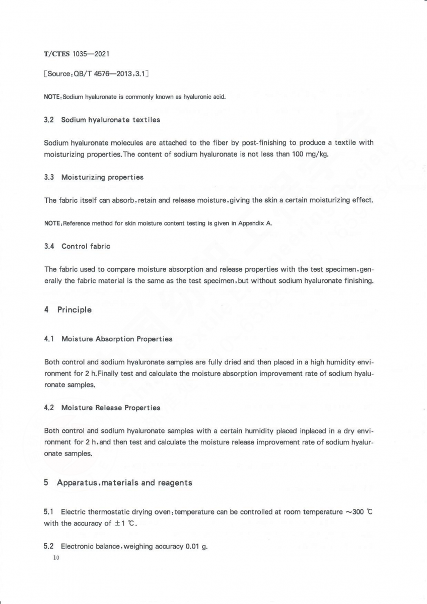 T/CTES 1035-2021 透明質酸鈉紡織品 保濕性能的檢測與評價
