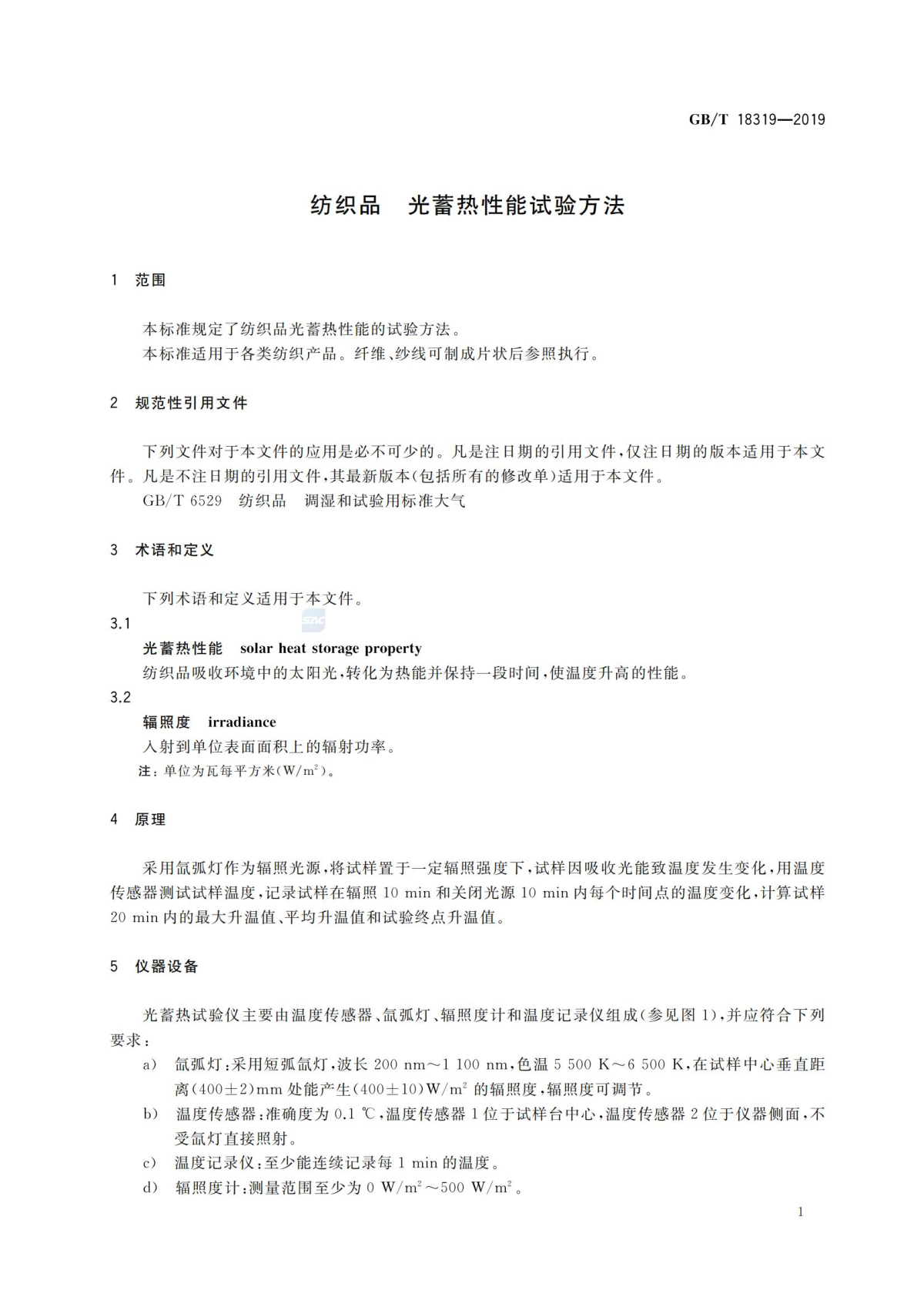 GB/T 18319-2019 紡織品 光蓄熱性能試驗方法