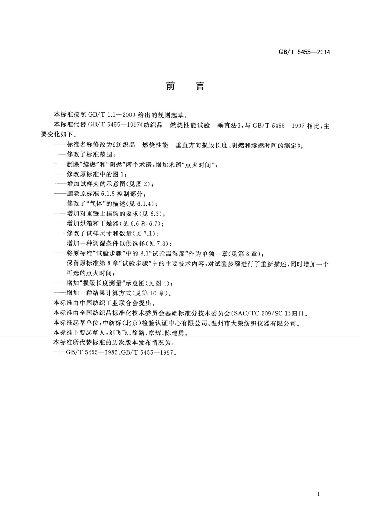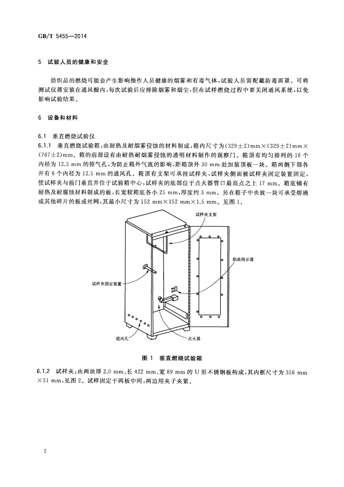 GB/T 5455-2014 紡織品 燃燒性能 垂直方向 損毀長度、陰燃和續燃時間的測定