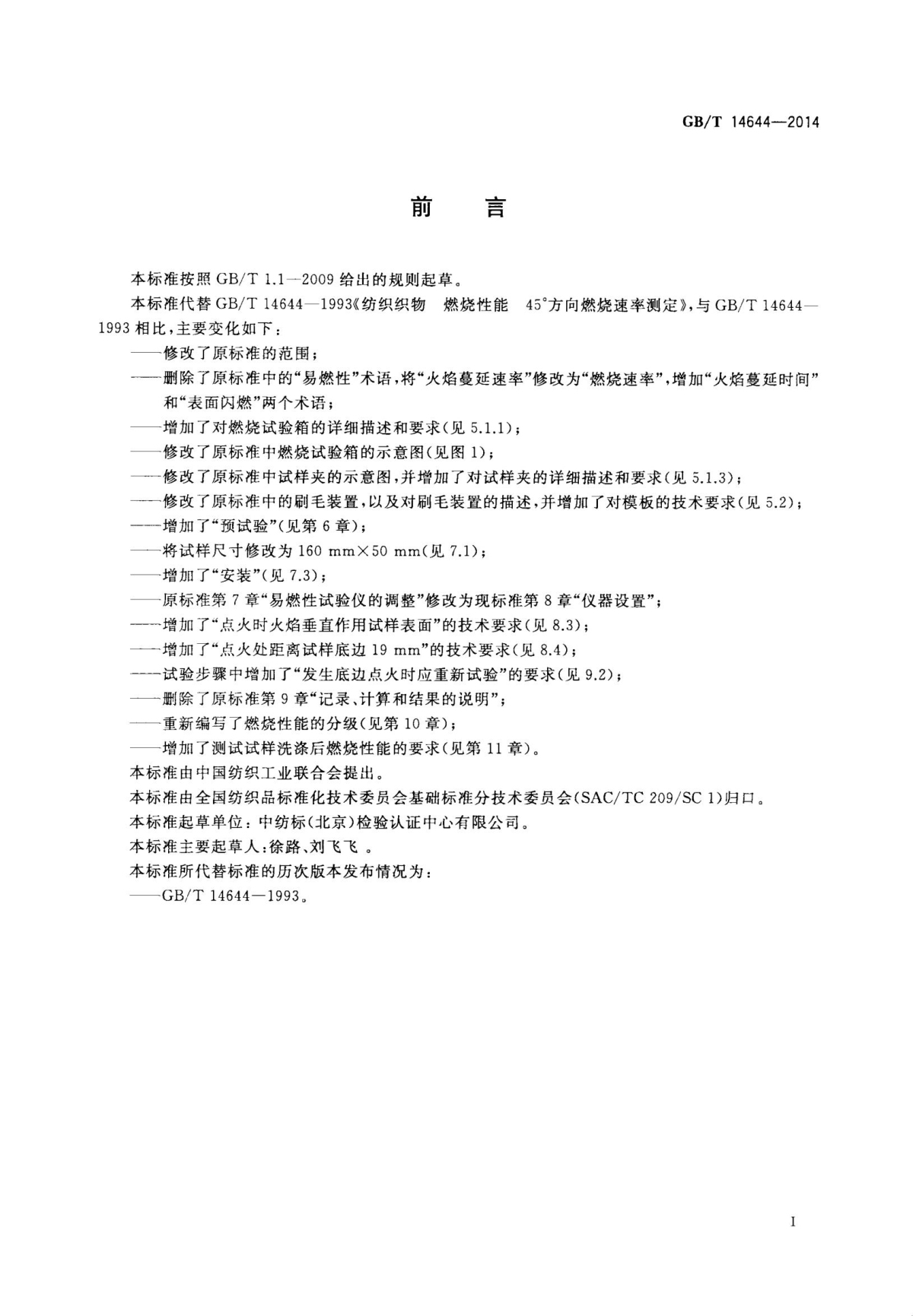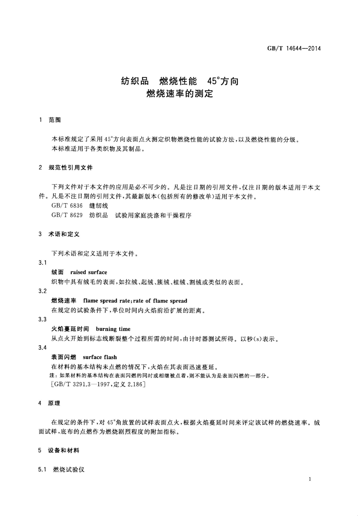 GB/T 14644-2014 紡織品 燃燒性能 45°方向 燃燒速率的測(cè)定