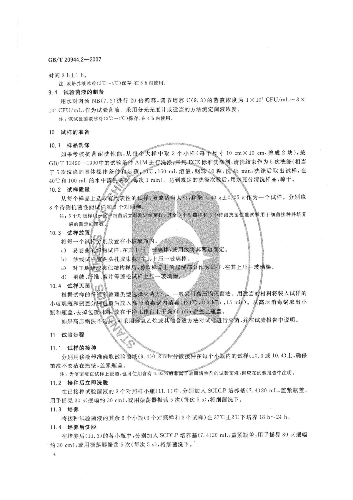 GB/T 20944.2-2007 Textiles--Evaluation for antibacterial activity--Part 2: Absorption method