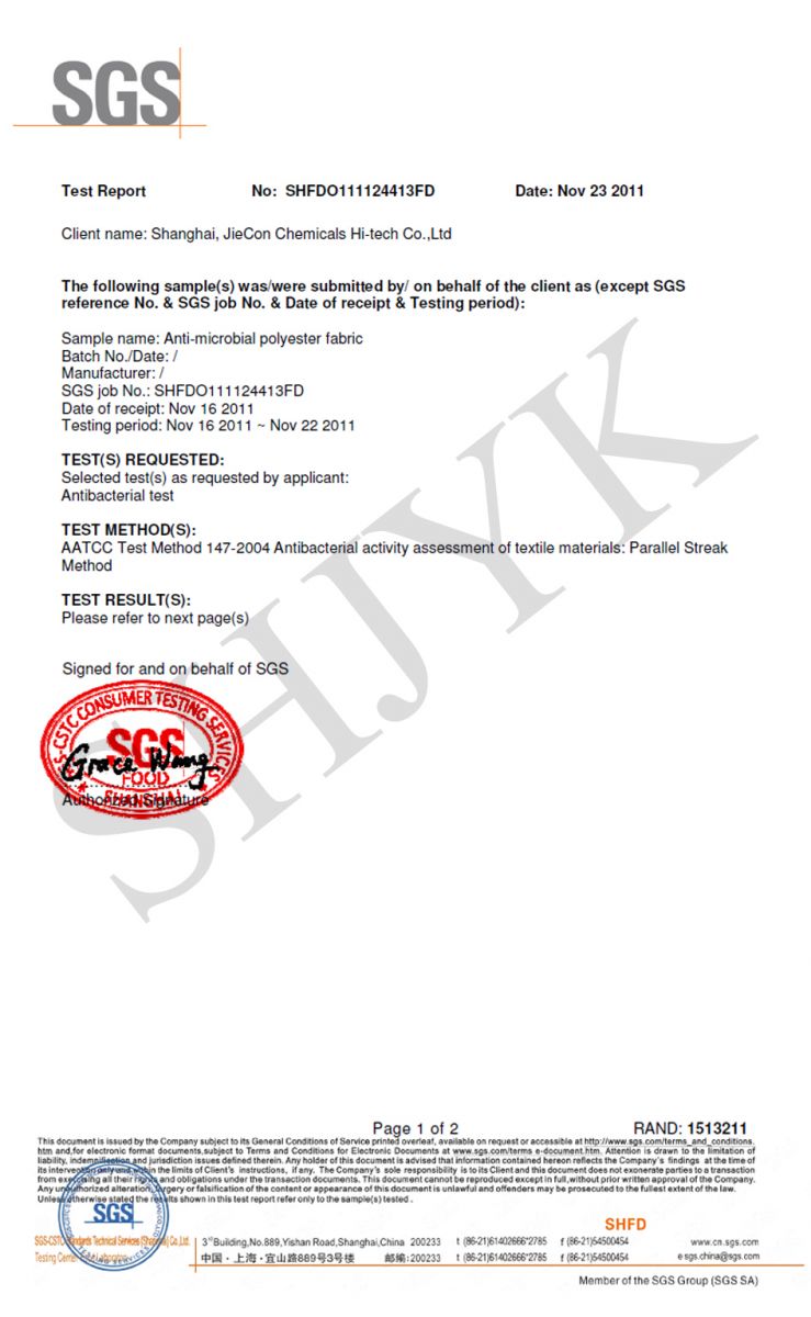 AATCC 147-JYK ABDO-300 (1.5% dosage) Polyester fabric --SGS -- in English