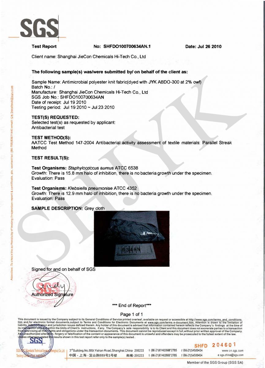 AATCC 147 test -JYK ABDO-300 ( 2% dosage )- SGS- in English