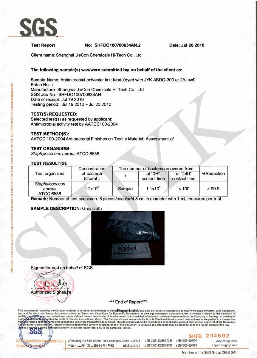 AATCC 100 test -JYK ABDO-300 ( 2% dosage)- SGS- in English