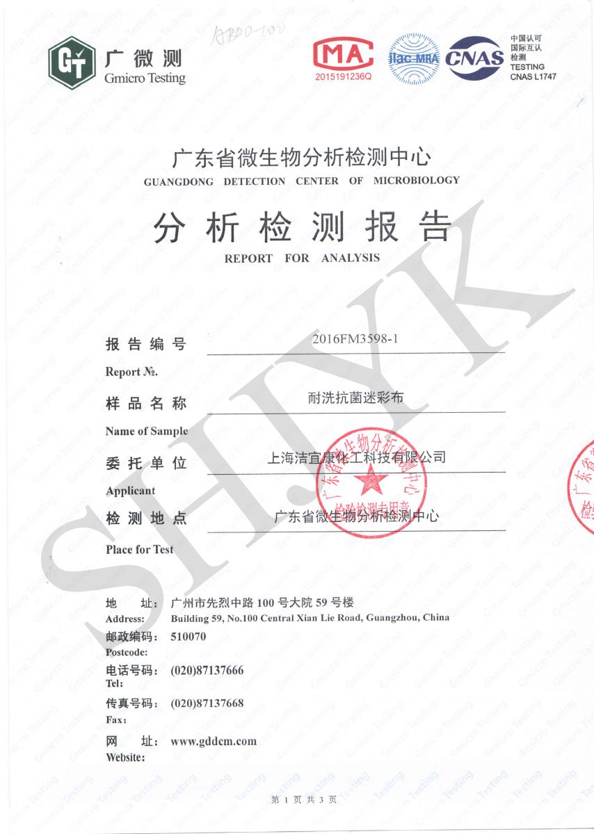 Camouflage clothing - Antibacterial test -GB--Gmicro Testing