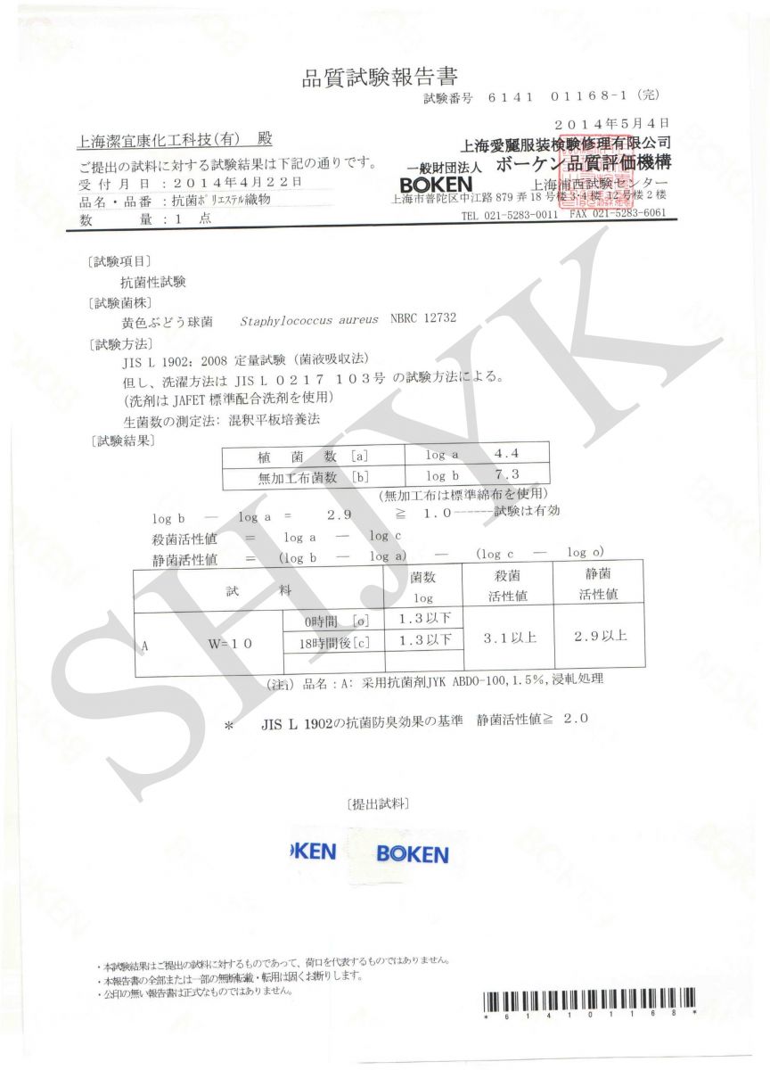 Polyester antibacterial test -JYK ABDO-100 ( 1.5% dosage )- BOKEN