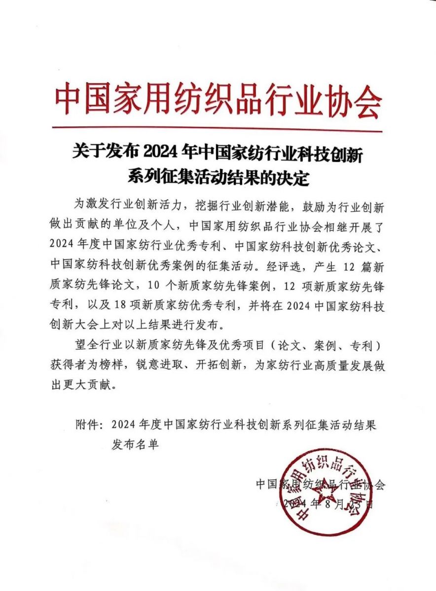 Thanks again for the recognition and encouragement of China Home Textile Industry Association, which will become a strong driving force for us to continue to move forward. Let us go hand in hand, go further and further on the road of innovation, and bring more high-quality, healthy and environmentally home textile products to consumers!