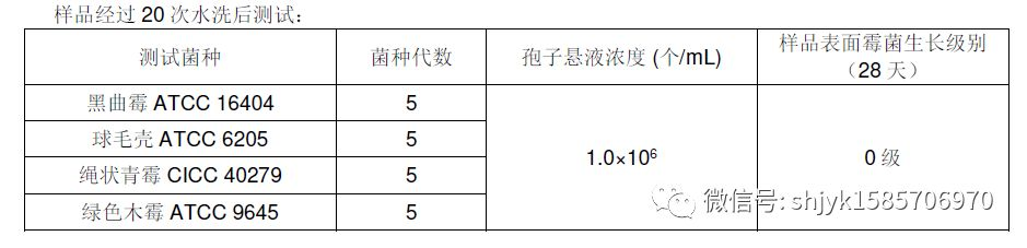 The anti-mildew performance of the product is good, and the anti-mildew performance is still 0 grade after 20 times of washing.